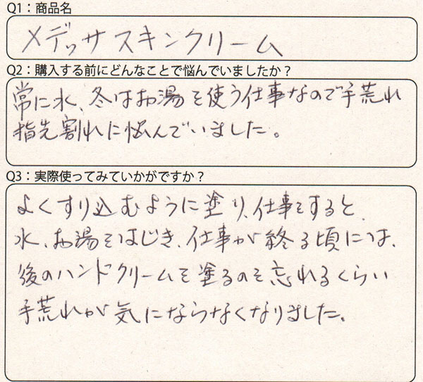 常に水、冬はお湯を使う仕事なので手荒れ指先割れに悩んでいました。