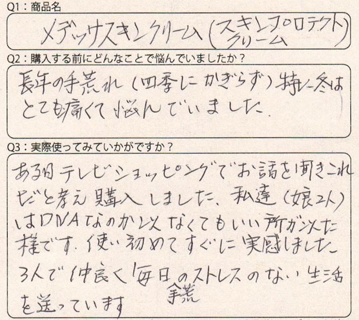 長年の手荒れ(四季にかぎらず)とくに冬は とても痛くて悩んでいました。